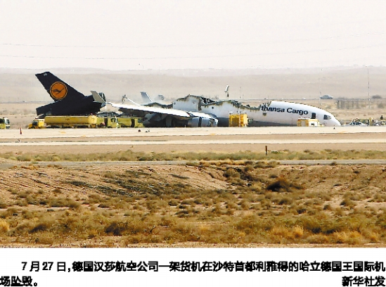 7月27日,德国汉莎航空公司一架货机在沙特首都利雅得的哈立德国王国际机场坠毁。 新华社发