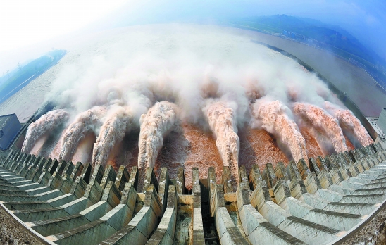 7月28日,三峡大坝正在泄洪。 新华社记者 程敏 摄