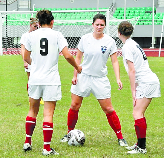 30日下午,力菲克杯中美青年女足对抗赛在杭州市江干区体育中心进行了首场比赛,杭州西子女足以4比0大胜美国爱荷华州女足。图为美国爱荷华州女足赛前进行热身。 林巨 陈清扬 摄
