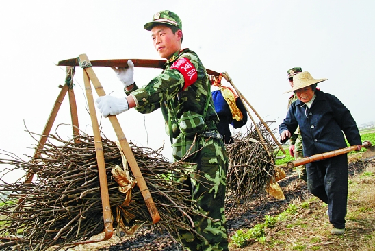 湖州支队官兵帮助驻地群众劳动。 何元洪 摄