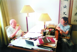 | 2000年8月27日,本报记者杨丽采访钱伟长。牛群 摄 |