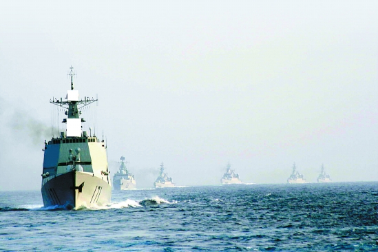 海军南海舰队某驱逐舰支队进行海上演练。
