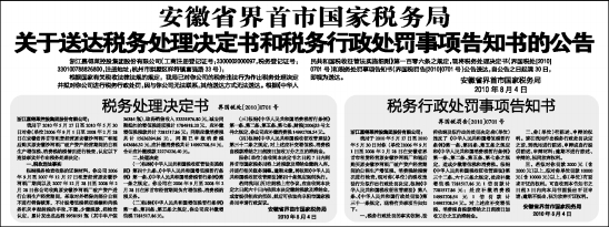 关于送达税务处理决定书和税务行政处罚事项告知书的公告