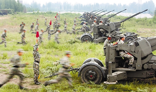 图为参加演练的高炮分队快速就位。新华社发 (崔炯臣 摄)