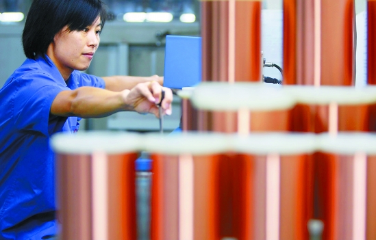 近日,诸暨市店口镇露笑集团的工人正在检测超微细漆包线。东方IC供图
