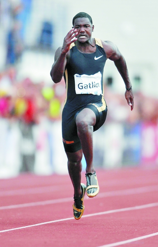 8月3日,加特林在男子100米比赛中。当日,曾经的世锦赛和奥运会男子百米冠军美国选手加特林四年禁赛期满后,在爱沙尼亚拉克韦雷举行的一场田径邀请赛中复出,并赢得首场比赛的胜利。 新华社发