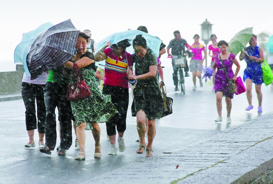 昨日,杭州西湖断桥,游客们在一场突如其来的暴风雨中狂奔。