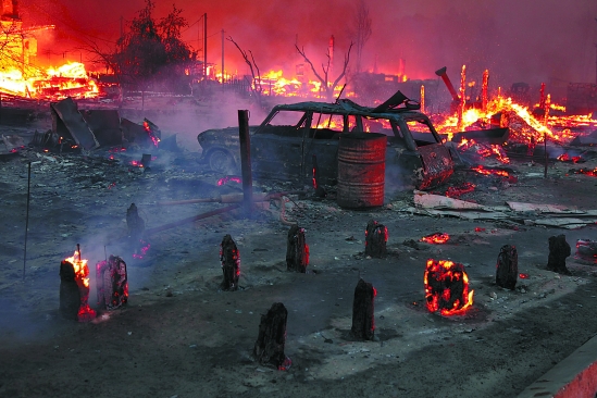 俄罗斯梁赞地区Peredeltsy村发生火灾,大量房屋被毁。