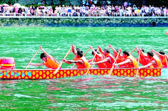 8月7日下午,建德市在新安江上举办龙舟大赛。作为新安江旅游节的传统节目,龙舟赛已成为吸引游客的一大利器。