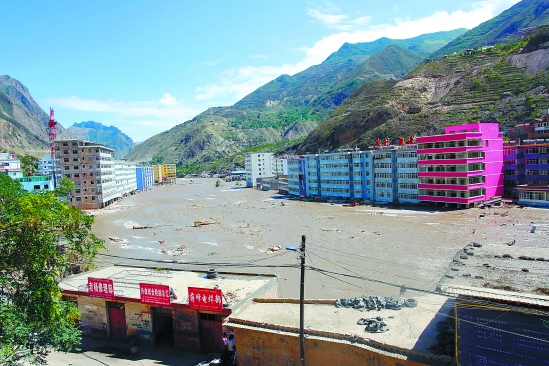遭遇特大山洪泥石流的舟曲县城一角。 新华社发(巩治永 摄)