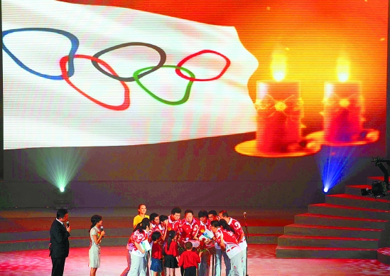 8月9日,以“我和你·相随永远”为主题的北京奥运会两周年纪念晚会在北京国家会议中心举行,来自祖国各地、各行各业的1000余名“奥运人”欢聚一堂,畅叙奥运情怀。 新华社发