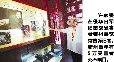 许家燮在侵华日军细菌战受害者衢州展览馆告诉记者,衢州当年有5万受害者死不瞑目。