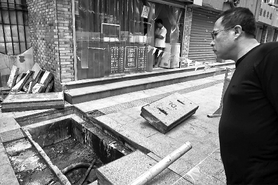 8月9日上午9时35分左右,杭州体育场路金祝社区门口的人行道上,突然钻出一团大火,几分钟后,又引发一次剧烈的爆炸,4块水泥板被炸飞1米多高。事后查出,爆炸是因一根10千伏的电缆负荷过大所致。本报记者 包敦远 摄