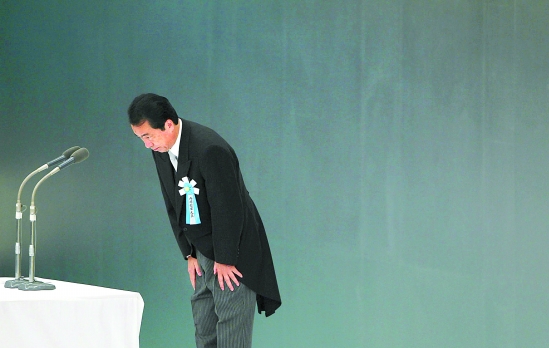 8月15日,日本首相菅直人在东京出席全国战争死者悼念仪式 新华社发