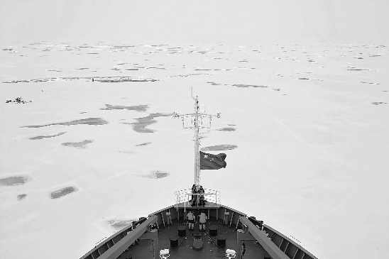 ▲昨天,中国第四次北极科学考察队乘坐“雪龙”号极地科学考察船在北冰洋举行降半旗仪式,为舟曲遇难同胞志哀。 新华社记者 张建松 摄