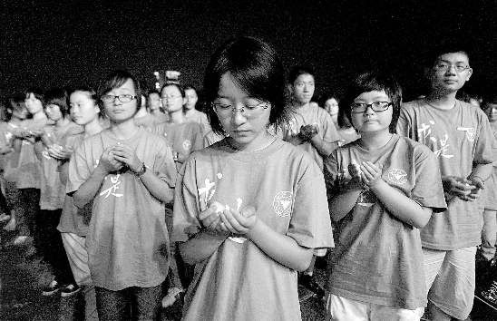 昨晚,浙江大学2010级数千名本科新生集体默哀3分钟。 本报记者 李震宇 摄
