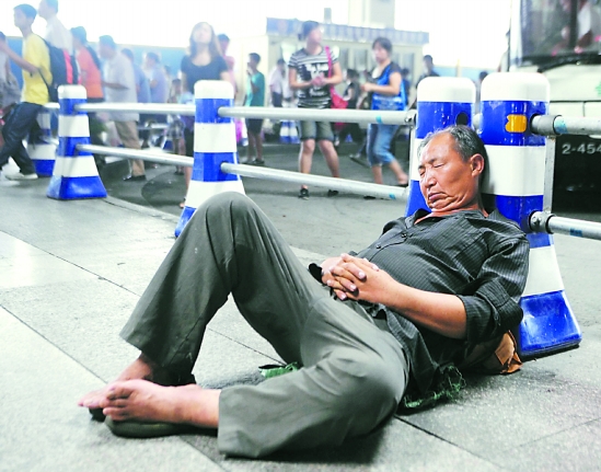 走累了,马路当床。