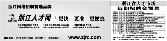 9月 3日(周五) 浙江省营销、外贸、管理、财务、文秘、广告专场招聘会