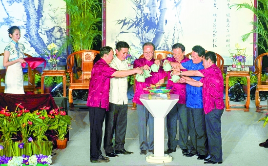 与会嘉宾共沏一壶茶。本报记者 杨晓轩 摄