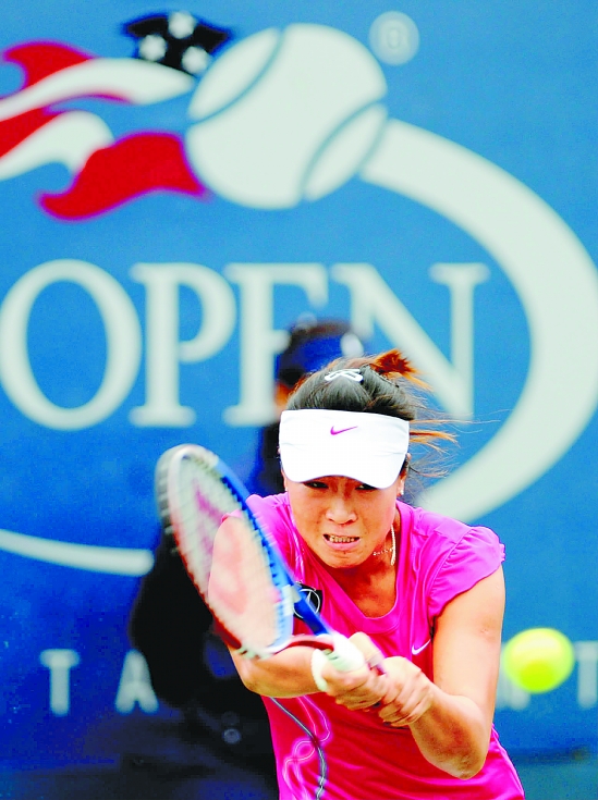 8月24日,2010美国网球公开赛资格赛在纽约拉开帷幕,来自浙江的中国选手韩馨蕴在女子单打首轮比赛中以2比0战胜德国选手施鲁夫,晋级下一轮。 新华社记者 申宏 摄
