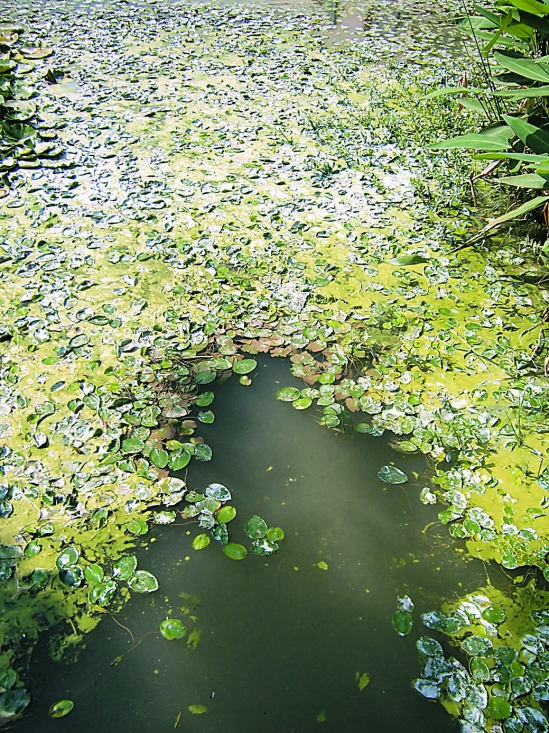 渔人码头边围起来的景观水潭里有蓝藻的踪迹。