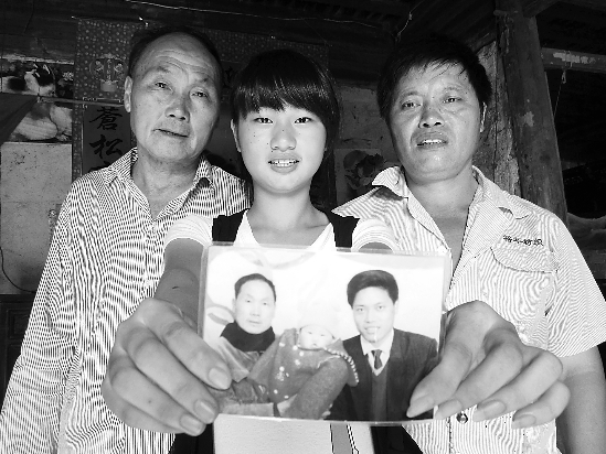 胡咪咪手里拿的照片,是她7个月大时一家三口的合影。