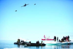加拿大总理哈珀8月25日视察了在加拿大努纳武特地区举行的“纳努克行动”军事演习并表示,加拿大将致力于宣示和保护其在北极地区的主权。为期20天的“纳努克行动”军演自8月6日开始,围绕加拿大努纳武特地区的雷索卢特展开,这是此项演习自2007年首创以来所到达的最北位置。图为参演的战机编队掠过努纳武特地区的雷索卢特上空。 新华社记者 张大成 摄