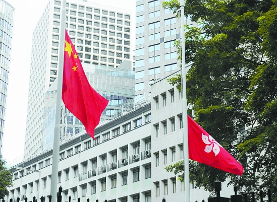 8月26日,在香港特区政府总部,国旗区旗下半旗。新华社发(李秋婵 摄)