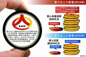 据悉,今年进行的第六次人口普查,中央财政为此投入近7亿元,如果依照第五次人口普查中央财政投入占比全国各级政府投入的1/10计算,今年全国各地投入或将达到70亿元,再加上中央投入的近7亿元,全国财政投入或将达到80亿元。