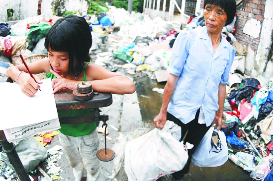 葛志敏趴在秤台上算账,加、减、乘、除,只读三年级的她还能运用自如。