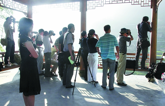 本报签约摄影师在大柯村拍摄风光。鲍卫东 摄