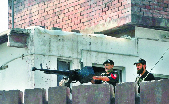 8月28日,巴基斯坦警察在白沙瓦的美国领事馆和巴基斯坦军方办公楼所在区域警戒。 新华社发