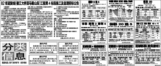 更多信息查询:浙江体育彩票网 www.zjlottery.com