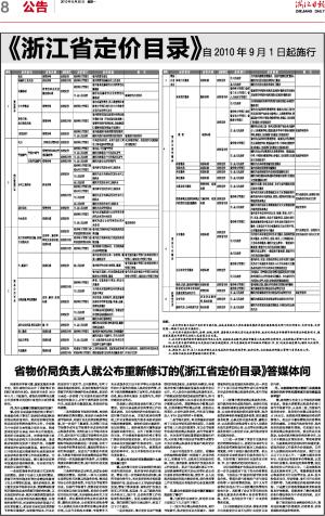 省物价局负责人就公布重新修订的《浙江省定价目录》答媒体问