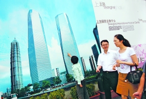 | 建设中的上海国际金融中心吸引了越来越多浙江人的眼球。 东方IC供图 |