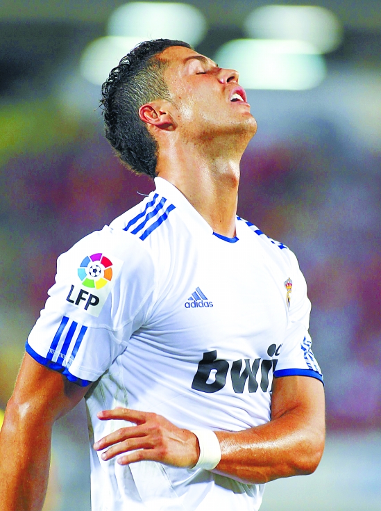 C罗在比赛中仰天长叹。新华社发