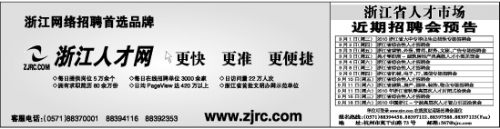 9月 3日(周五) 浙江省营销、外贸、管理、财务、文秘、广告专场招聘会