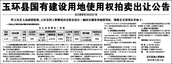 玉土交告字〔2010〕21号