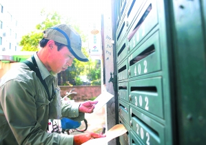 张武平如同织布机的梭子,在住宅区成排的邮箱间来往穿梭,业务非常熟练。上楼梯时核对地址,下楼梯时已找好下一户地址,中途不浪费一点时间。