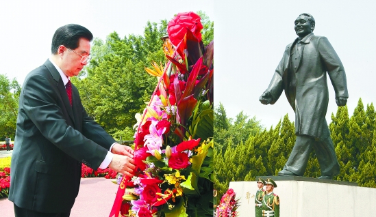 9月6日,中共中央总书记、国家主席、中央军委主席胡锦涛在广东深圳莲花山公园向邓小平同志铜像敬献花篮,表达对邓小平同志的无限敬意和怀念。