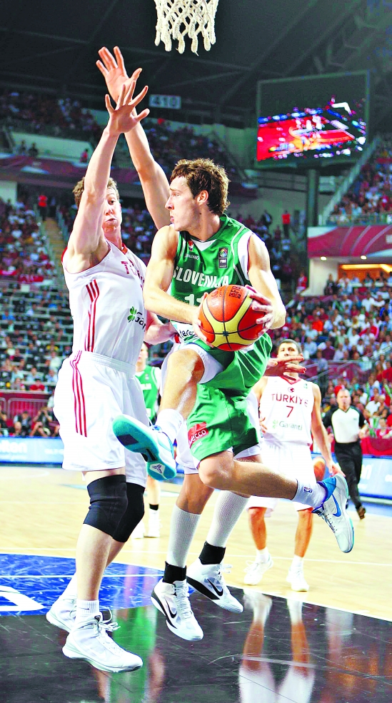 9月8日,在土耳其伊斯坦布尔举行的2010年男篮世锦赛四分之一决赛中,土耳其队以95比68战胜斯洛文尼亚队,塞尔维亚队以92比89战胜西班牙队。 新华社发