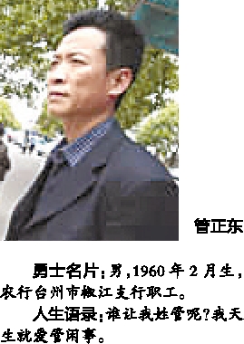 勇士名片:男,1960年2月生,农行台州市椒江支行职工。