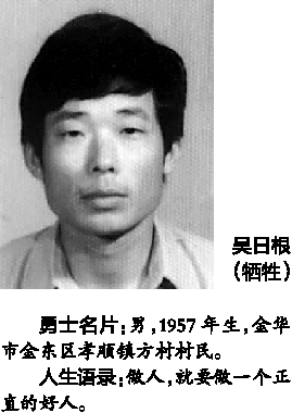 勇士名片:男,1957年生,金华市金东区孝顺镇方村村民。