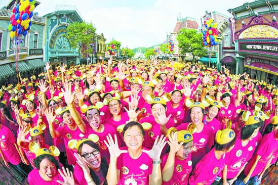 9月12日,人们在为迪士尼乐园5周岁“生日”欢呼。 新华社发