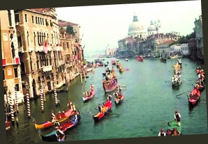 威尼斯。举世闻名的意大利水城可能一转眼就将被水淹没。一个世纪以来它已下沉24厘米。或许有一天,随着海平面的不断上涨,圣马可广场也将永远浸泡在威尼斯运河之中。意大利政府拟定了一份拯救城市的围堰计划,然而这份计划磕磕绊绊仍未完工,而在此期间水城仍在继续下沉。