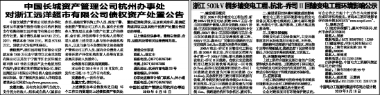 中国长城资产管理公司杭州办事处拟对从华夏银行股份有限公司杭州解放支行收购的浙江远洋超市有限公司债权进行处置,累计债权总额8477.82万元。其中:借款本金7500万元,利息977.82万元。贷款方式为抵押和保证。