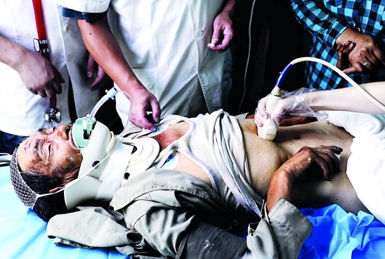 急诊室里,医生在给采摘山核桃受伤者会诊。