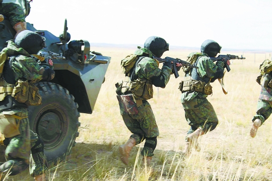 吉尔吉斯斯坦特战队员演练进攻。新华社记者 王建民 摄