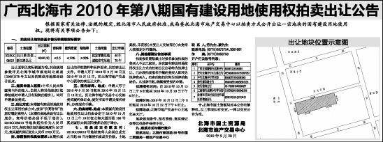 广西北海市2010年第八期国有建设用地使用权拍卖出让公告