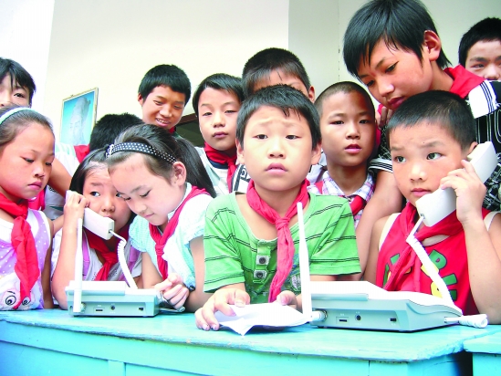 | “奶奶,中秋节到了,你们身体好吗?我在永康很好,请不要挂念……”昨日,在永康市西城街道山下小学就读的王新艳,向远在贵州老家的奶奶打电话问候。当天,永康团市委联合移动公司团委,到10多所民工子弟集中就读的农村学校,开设“亲情十分钟”免费通讯,为2000多名学生服务,活动将持续10多天。永康日报记者 孔香翠 摄 |